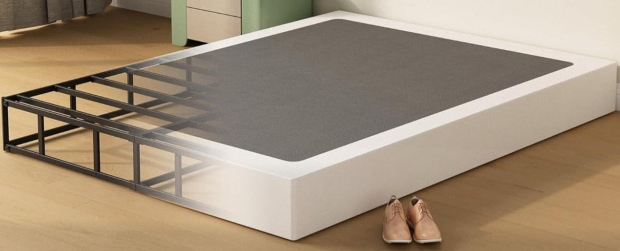Our bed frames fit perfectly over your existing standard box spring, much like a glove. If you don't already have a box spring, we suggest purchasing one that is **9 inches in height** for a Queen or King size bed. You can find suitable options on Facebook Marketplace, Amazon, or Wayfair.